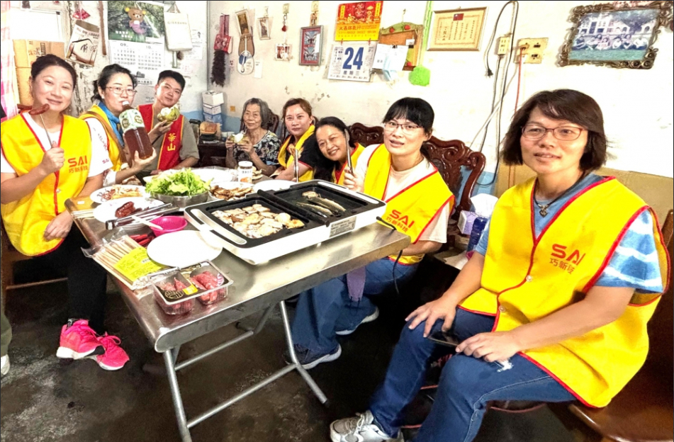 其中6位志工將中秋關懷禮逐一送到長輩家中,傳遞節日溫暖;另一路到陳奶奶家中陪伴烤肉、圍爐、唱卡拉OK,營造久違的團圓氛圍。活動結束後,志工們再持續送禮,讓爺奶感受社會的關懷。