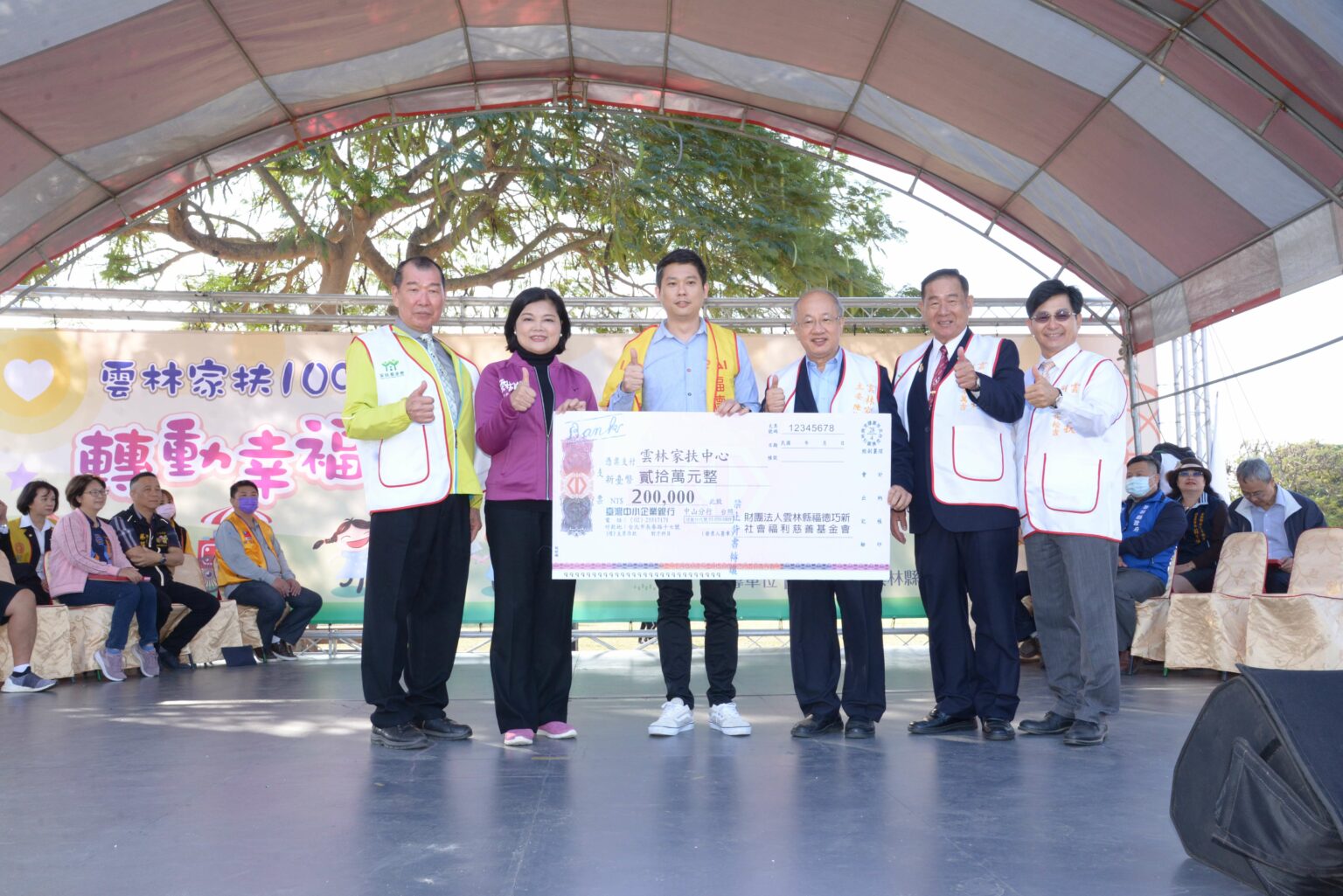 6日上午雲林家扶中心在雲林農博生態園區舉辦「轉動幸福,【扇】播愛」歲末冬暖園遊會。每年歲末來臨,雲林家扶都會集結社會各界的愛心與資源舉辦歲末冬暖活動,張縣長特地出席並與雲林家扶陳燦勳主委共同頒發感謝狀感謝企業團體、善心人士熱情相挺,縣府也捐助10萬元以行動支持家扶中心善行義舉,讓雲林受扶助貧困家庭共享社會溫馨與關懷。